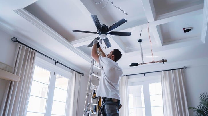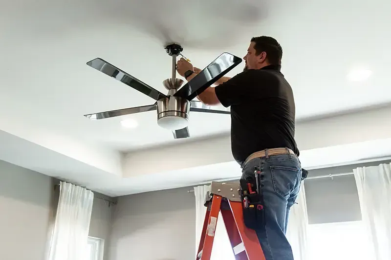 Most ceiling fan installations take about 45 minutes to 2 hours, depending on wiring, ceiling height, and whether a new electrical box or switch is required. Homes in Granite Bay, Roseville, and Rocklin may need additional time for older wiring upgrades.